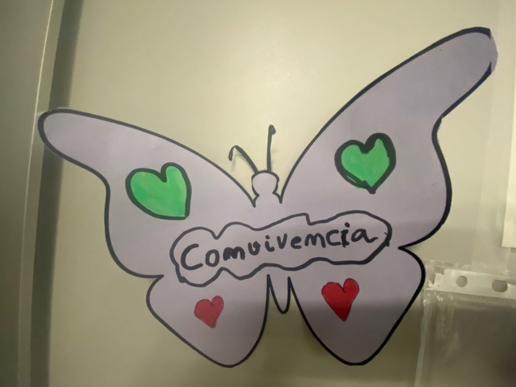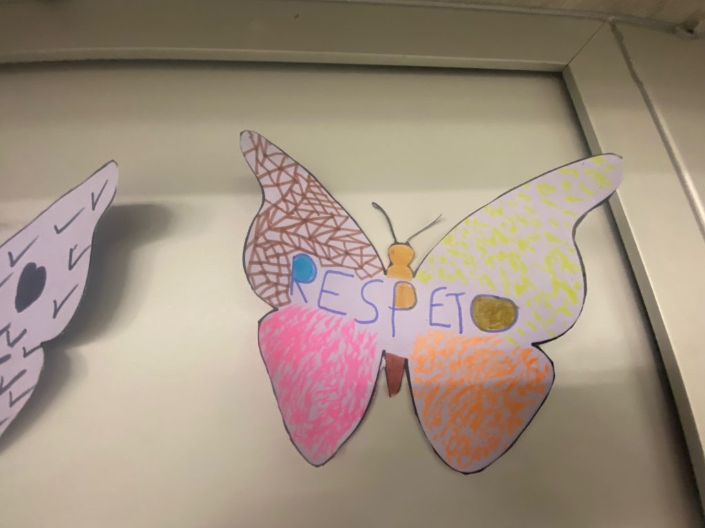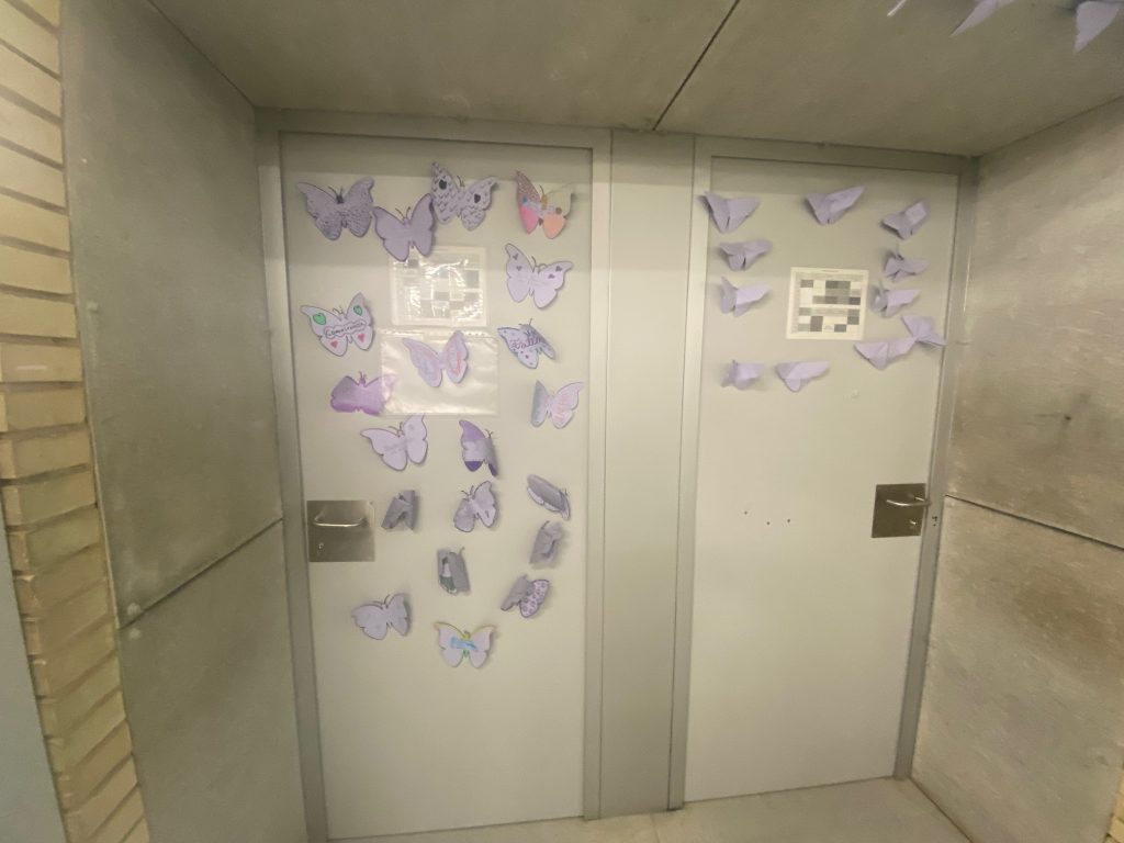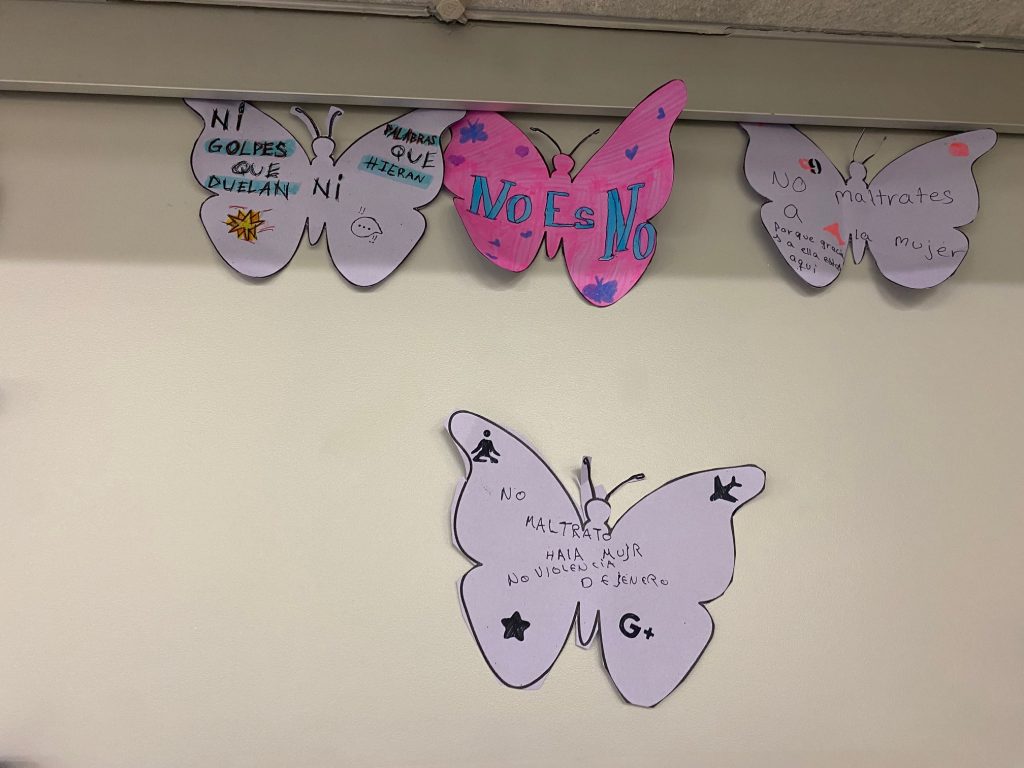El alumnado del IESO La Paz realizó unas mariposas moradas que pegaron en las puertas de las clases.